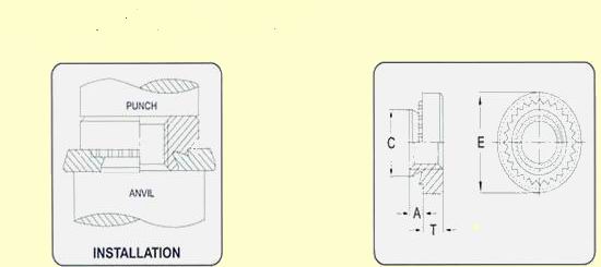 右圖為公制壓鉚螺母標準尺寸參數(shù)以及對應(yīng)鈑金厚度,請參照具體標準使用。其中碳鋼鍍鋅壓鉚螺母分為冷鐓壓鉚螺母和車削壓鉚螺母,SUS304不銹鋼壓鉚螺母為冷鐓工藝。SUS303不銹鋼壓鉚螺母為車削生產(chǎn)的加硬不銹鋼壓鉚螺母。